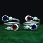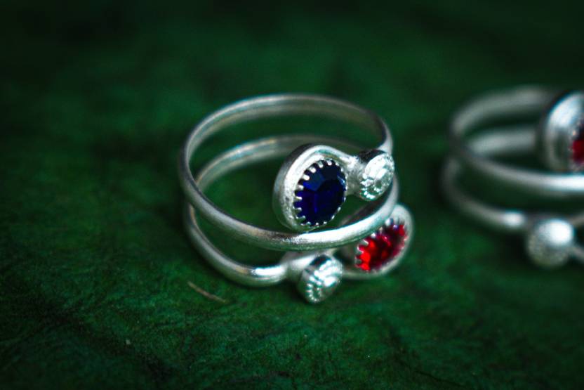 Silver Plated Toe ring Bichua Bichiya Red Blue designer stone toe rings 1 Pair (2Pcs)